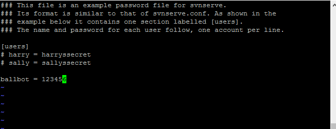| svnserve.conf | 이 레포지토리에 대한 설정 |