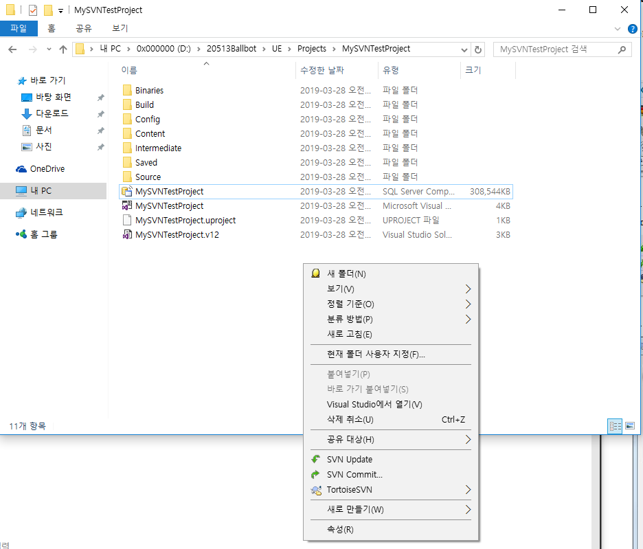 이는 아쉽게도 언리얼에서 지원 하지 않고, 위에서 설치한 Tortoise SVN 을 통해서 해야 한다.