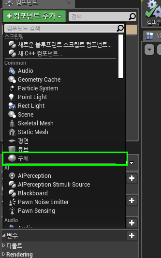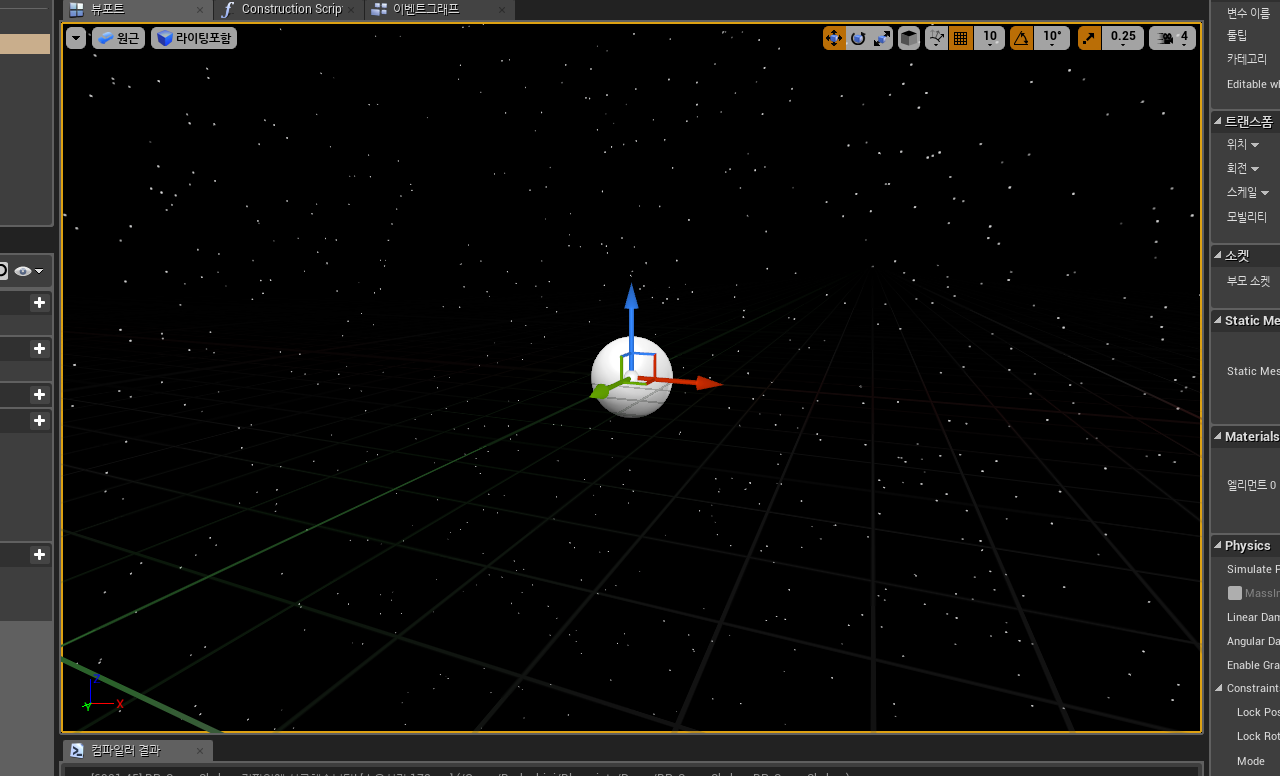 이 구체에 대한 설정을 몇가지 바꾼다.