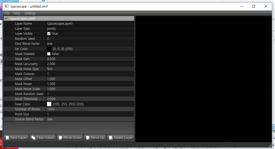 | Layer Type | 별인지, 노이즈인지, 성운인지 설정 |