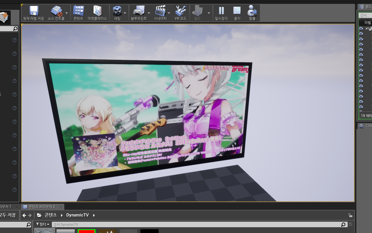 이를 응용하면 리듬게임에서의 MV 영상이라던지, 전광판 (사실 TV 의 크기를 줄이면 전광판이 된다) 도 제작 할 수 있을 것 이다.