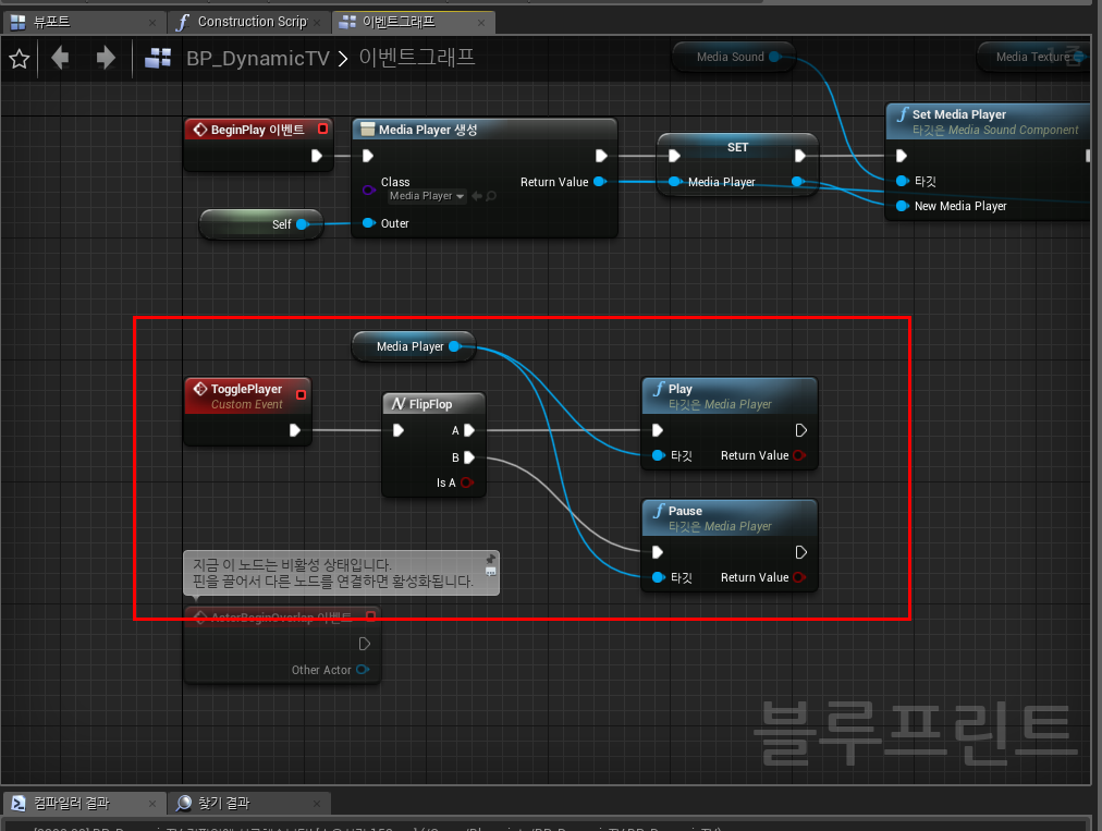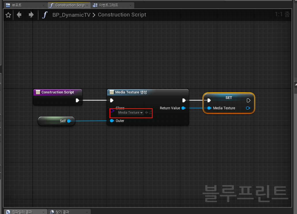 이제 비디오가 재생되도록 해보자. 다시 BP_DynamicTV 블루프린트로 이동 한다.