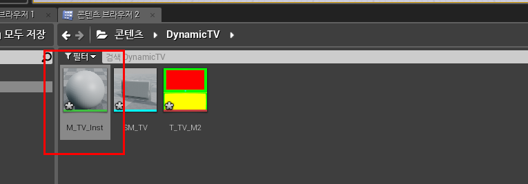 M_TV_Inst 파일을 열고, 편집을 시작 한다. (이는 TV 에 사용될 머티리얼 이다.)
