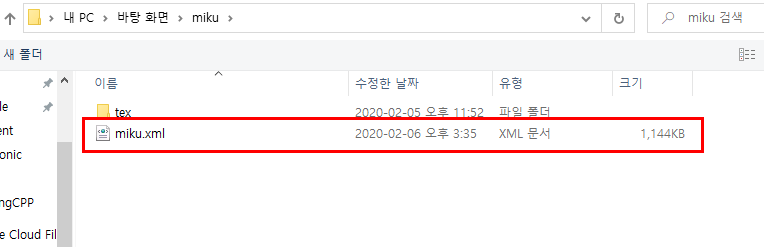 FBX 로 변환 작업을 했을 때, FBX 파일과 XML 파일이 같이 만들어진걸 알 수 있다.