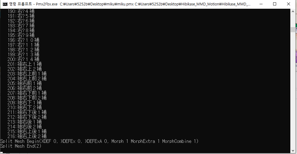 Pmx2Fbx 라는 프로그램을 사용하여 .fbx 파일로 변환하고자 한다.