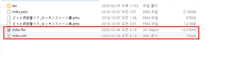 완료되었다면, .pmx 파일이 있었던 곳에 아래와 같은 파일이 있을 것 이다.
