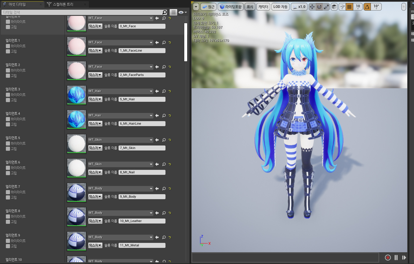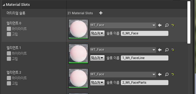 그리고, 오른쪽에 보면 MT_Face 라는 부위와 MT_FaceParts 라는 부위에 해당 텍스쳐가 적용된다는것도 알 수 있다.