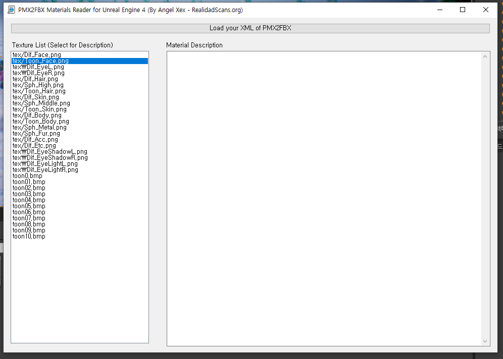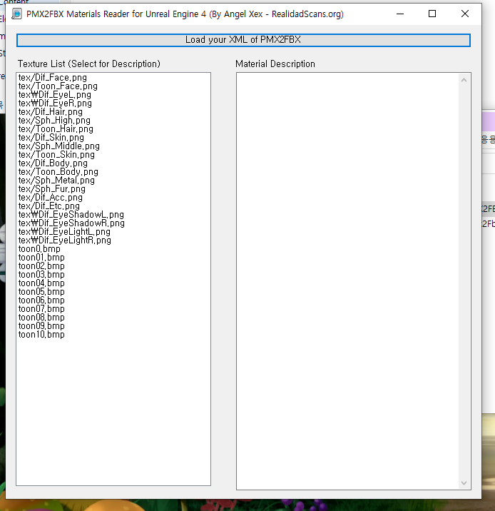 위에서 업로드해둔 파일을 열어보면, PMX2FBX Materials Render 라는 프로그램이 있다.
