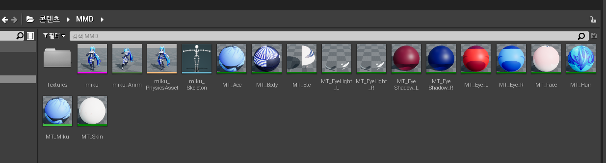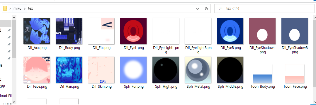 이전에 pmx 파일이 있던 폴더로 가보면, 텍스쳐 파일이 있을 것 이다.