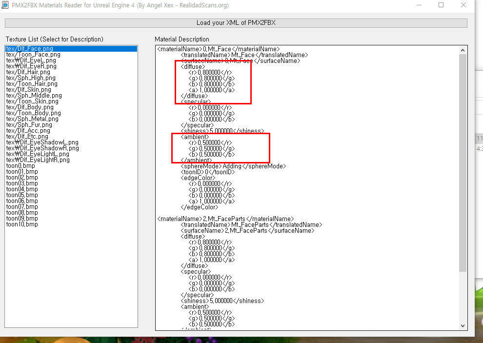 만약 변환작업을 블렌더로 했을 경우, XML 파일이 없어서 머티리얼을 만들때 꽤나 힘들어진다.