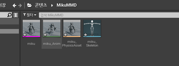 이를 확인하고, 엔진으로 돌아와 방금 만든 머티리얼(MT_Miku) 을 기반으로 하는 머티리얼 인스턴스를 생성한다.