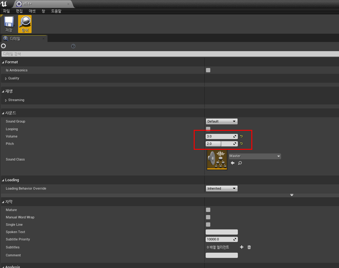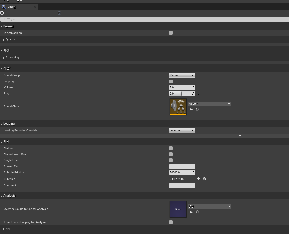 언리얼 엔진에 임포트 된 wav 파일을 열어보면 이렇게 뜬다.
