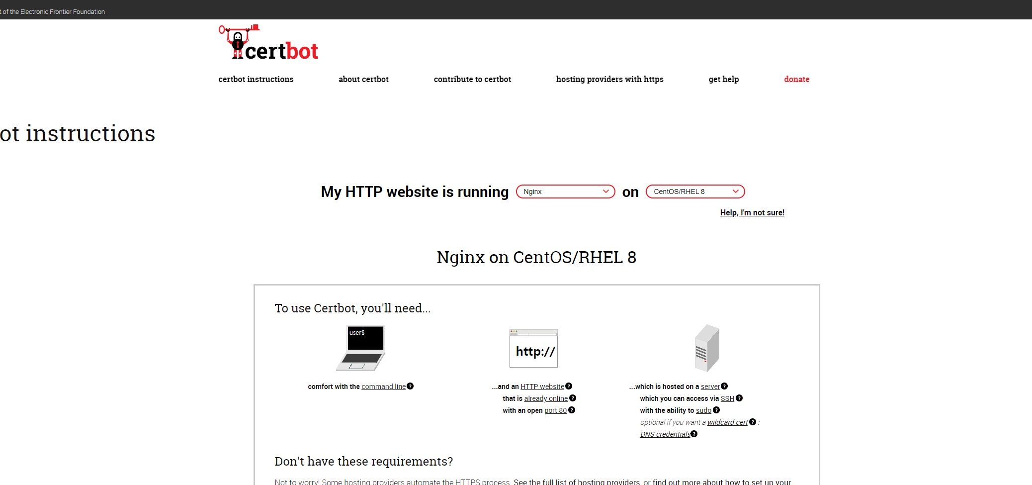 몇몇 블로그들을 참고해보면 epel-release 리포에서 cerbot 을 설치하는 경우가 있는데, 이렇게 하면 잘 안된다. 공식 웹 사이트에서 설명하는대로 설치해야만 편리하게 인증서를 발급&갱신 할 수 있다.