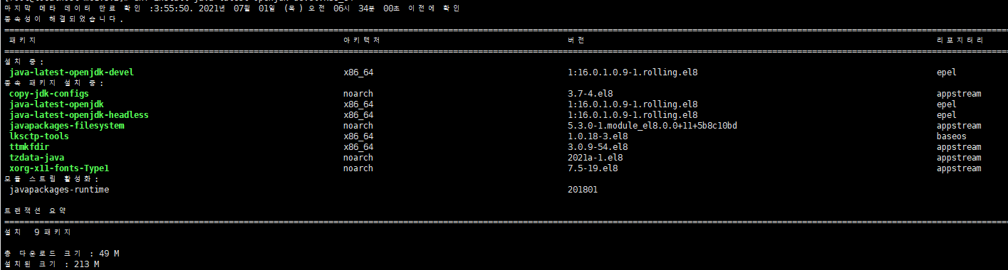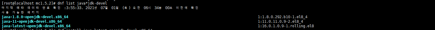현재 설치 가능한 JDK 들을 살펴본다. 1.8, 11, latest (현 시점에서 16) 이 설치 가능하다.
